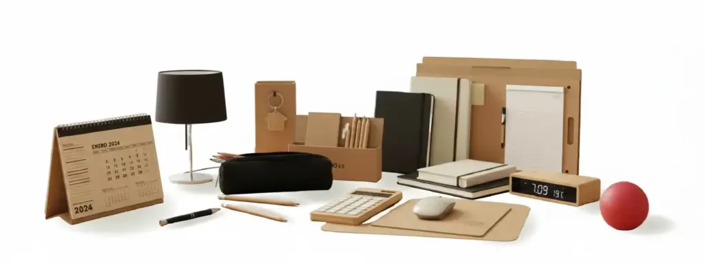 Regalos publicitarios de oficina: alfombrillas de ratón, agendas, calendarios, calculadoras, relojes de mesa, lámparas, etc