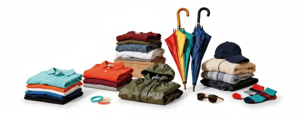 Regalos publicitarios de ropa y accesorios: camisetas personalizadas, sudaderas, gorras, bufandas, paraguas, guantes, chalecos, etc.