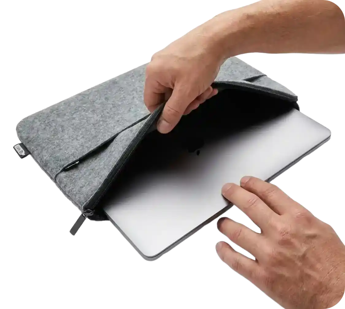 Les fundes de feltre o tela reciclada són lleugeres i sostenibles; les fundes de neoprè personalitzades ofereixen protecció i flexibilitat; i els maletins per a portàtil personalitzats aporten un acabat més professional.