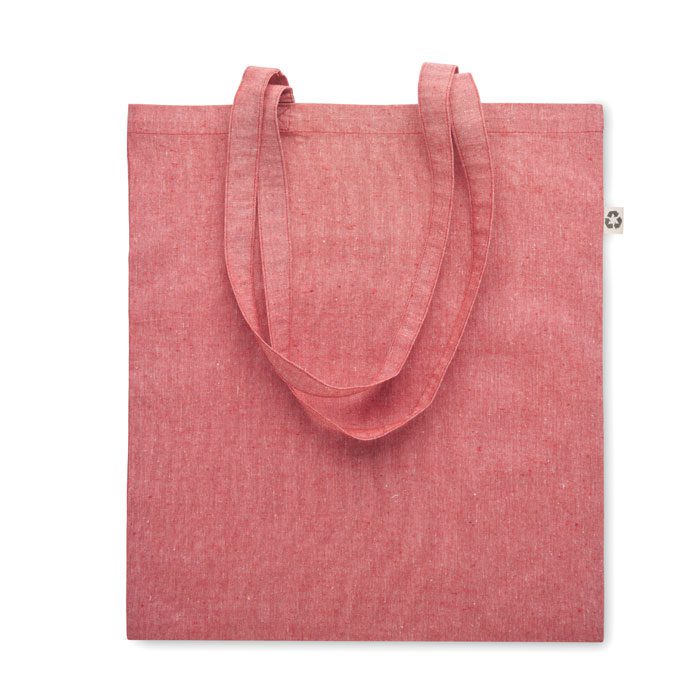 Bossa de compra ABIN, ideal com a article promocional per a empreses amb consciència ecològica. Fabricada en cotó reciclat (80%) i cotó (20%) de 140 gr/m², aquesta bossa corporativa destaca per les seves nanses llargues i resistència. Perfecta per a fires o esdeveniments, permet la personalització amb el logotip mitjançant serigrafia. Disponible en vermell, aquesta bossa publicitària és una opció sostenible per a campanyes de màrqueting. Mides: 42x38x42 cm. Un regal corporatiu pràctic i respectuós amb el medi ambient.