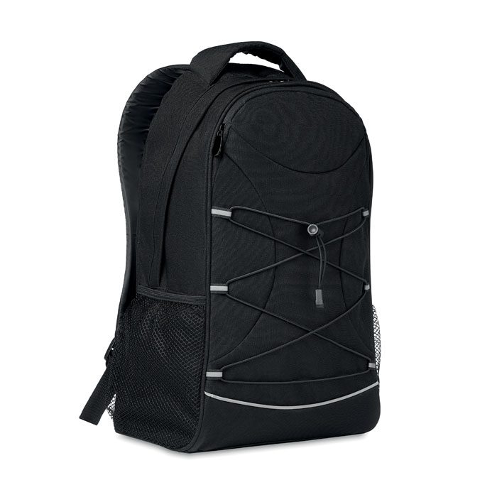 La motxilla Monte Lomo és una opció corporativa ideal, fabricada en RPET 600D jaspiat. Perfecta com a article promocional personalitzat, el seu disseny inclou un revestiment de colors contrastants i un distintiu cordó decoratiu frontal. Incorpora pràctiques butxaques de malla laterals, ideal per a campanyes de marca. Disponible en color negre, aquesta motxilla publicitària ofereix un ampli espai per al teu logotip mitjançant serigrafia. Ideal per a regals corporatius en esdeveniments i fires.