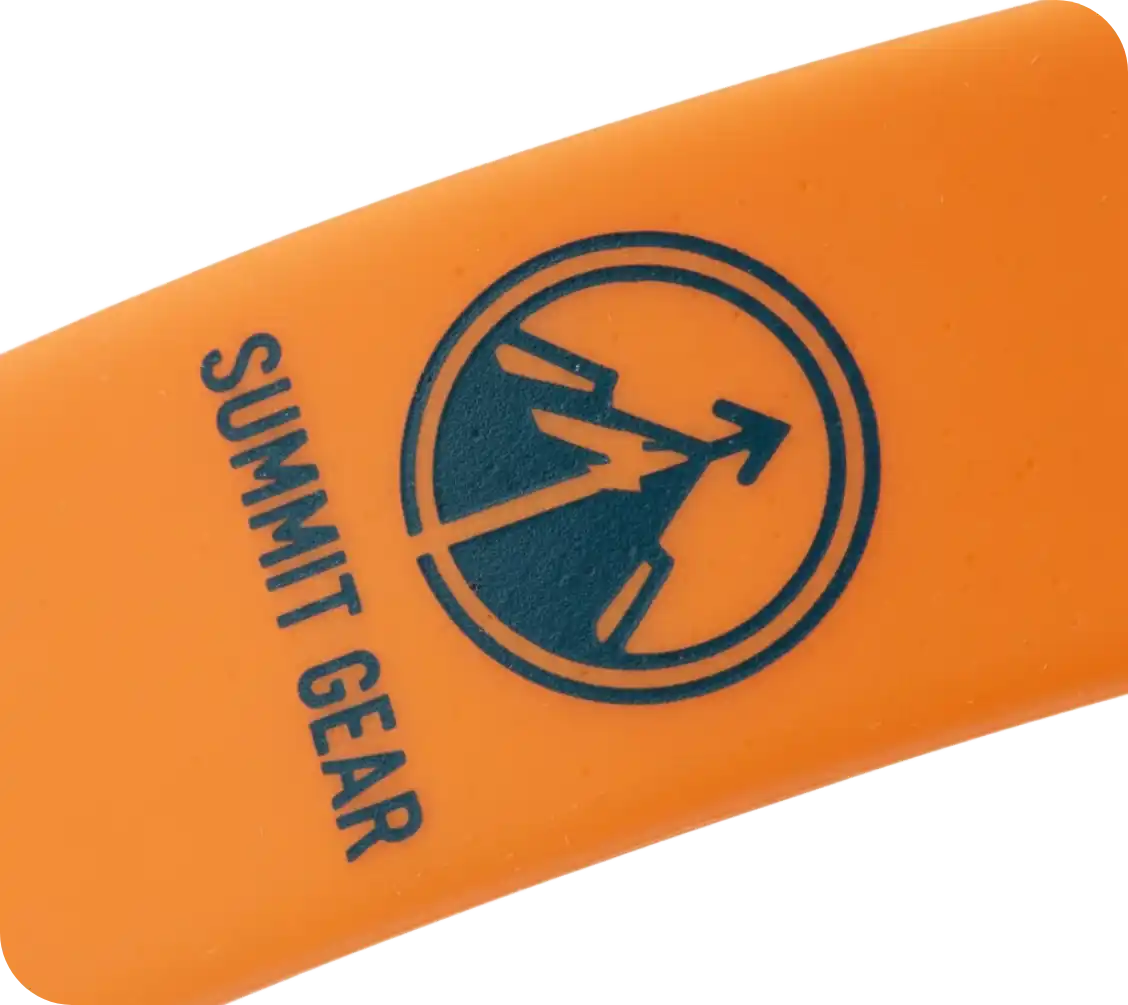 En las pulseras personalizadas, el área más habitual de impresión es la zona central, ideal para incluir el logotipo principal o un eslogan corto. También puede aprovecharse la cara interior o lateral para añadir un mensaje secundario, una web o un hashtag sin sobrecargar el diseño del artículo promocional.