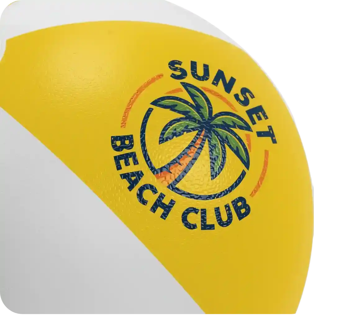 – Artículos de playa serigrafiados con logo: técnica muy resistente al sol y al lavado, ideal para textiles y superficies amplias.