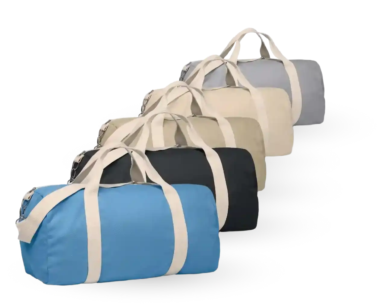 Las bolsas deportivas personalizadas de poliéster son ligeras y resistentes; las bolsas de lona ofrecen una imagen más elegante; y las bolsas deportivas ecológicas de RPET refuerzan el compromiso sostenible de tu marca.