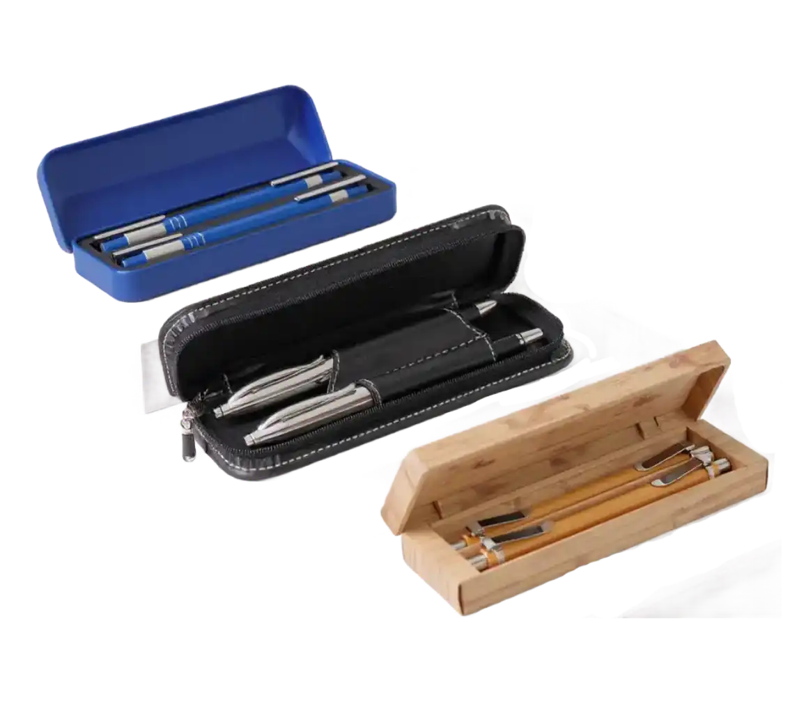Los sets de escritura promocionales funcionan muy bien como detalle en ferias, presentaciones o eventos corporativos. Los sets de escritura publicitarios baratos son ideales para campañas de gran volumen, mientras que los sets de escritura corporativos grabados resultan perfectos como regalo de agradecimiento, bienvenida o fidelización de clientes.