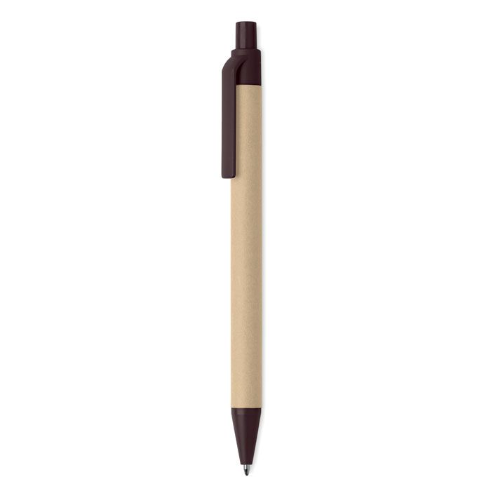 El bolígrafo JANEIRO es un boli promocional ecológico de papel, ideal para campañas sostenibles. Fabricado con cuerpo de papel y detalles en cascara de café y ABS, este bolígrafo corporativo combina diseño ecológico con funcionalidad. Su tinta azul asegura una escritura fluida, perfecto para eventos y ferias. Personalízalo con serigrafía para un regalo publicitario que destaca los valores de tu marca. Disponible en color marrón. Un artículo promocional para empresas que buscan opciones ecológicas.