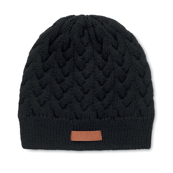 Gorro de punto en RPET con etiqueta para personalizar.