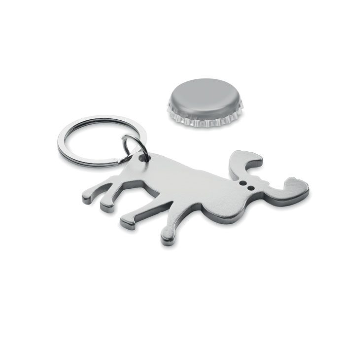 Llavero abrebotellas de aluminio reciclado con forma de reno plateado