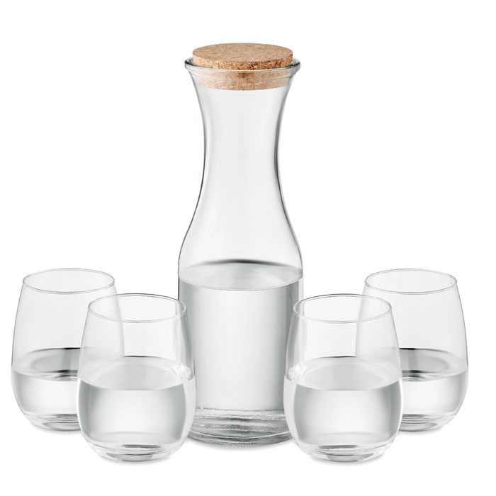 PICCADILLY es un set de jarra de vidrio reciclado con tapa de corcho y cuatro vasos de 420 ml, ideal como regalo corporativo promocional. Perfecto para eventos y campañas de marca, este set de vasos personalizados añade un toque distintivo. La jarra de 1L con tapa de corcho y vasos a juego ofrecen un acabado transparente y elegante. Ideal para personalizar mediante serigrafía. Un regalo promocional perfecto para empresas que buscan artículos publicitarios de calidad.