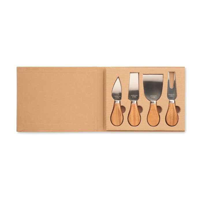 Juego de cuatro cuchillos para queso en caja de regalo