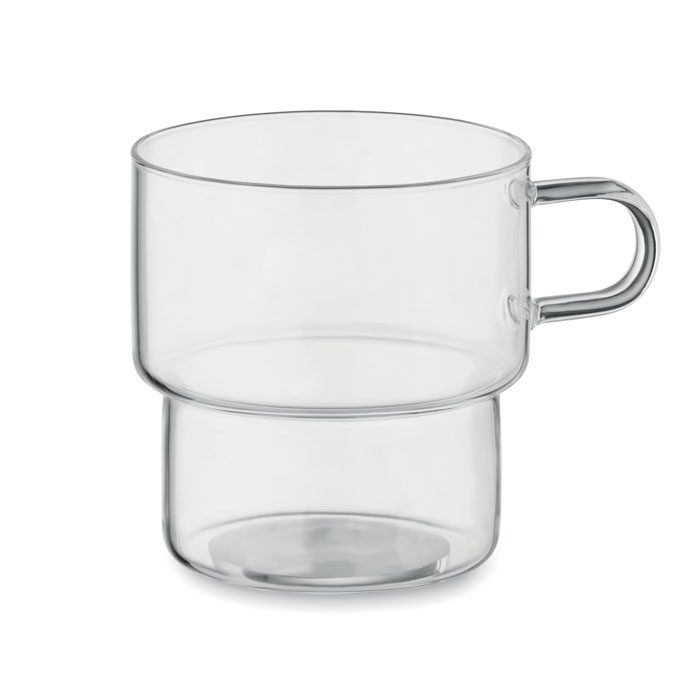 Taza apilable transparente de cristal de borosilicato con asa (300 ml)