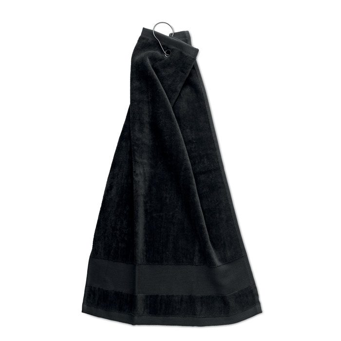 La toalla de golf corporativa HITOWGO, fabricada en suave algodón de 350 gr/m², es un regalo promocional práctico y elegante. Perfecta para eventos deportivos o campañas de marca, esta toalla publicitaria presenta un ojal de cobre y una anilla superior para colgarla fácilmente. Personalízala con tu logo mediante serigrafía o bordado. Disponible en color negro, mide 40×60 cm, ideal para llevar en la bolsa de golf. Un artículo promocional para empresas que buscan calidad y funcionalidad.